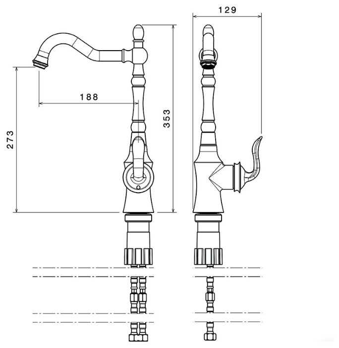 - + высота излива, удобная ручка переключателя, винтажный внешний вид.