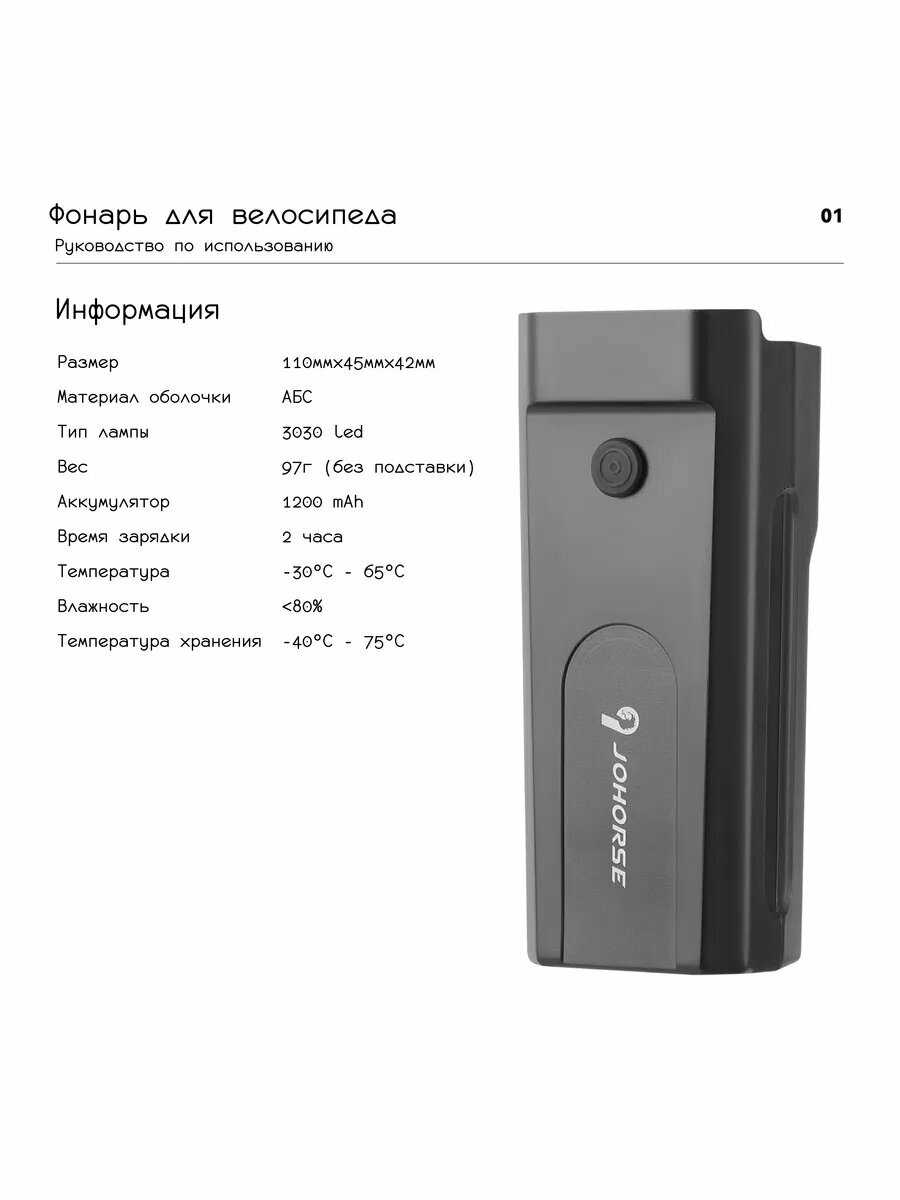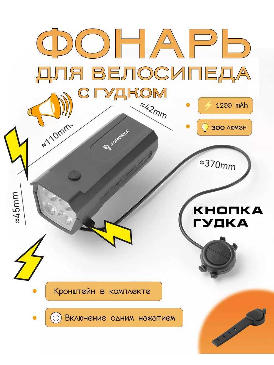 Особенности : | USB-зарядка, влагозащищенный, выносная кнопка переключения режимов, звуковой сигнал |