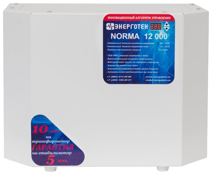 - + Достойная вещь, выполняет свои функции, очень помогла, напряжение в сети прыгает до 265В,сейчас все в норме