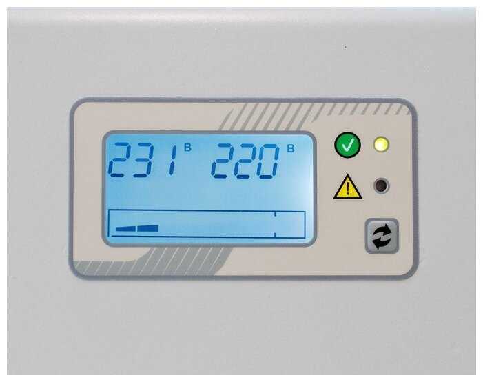 - Регулируемое выходное напряжение. Возможность задать напряжение от 220 до 230 В с шагом 1 В позволяет точно настроить питание под конкретные потребности.