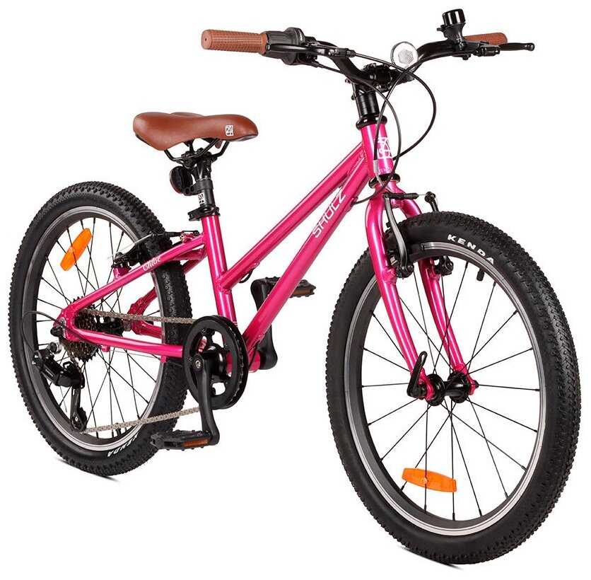 Shulz Chloe - легкий алюминиевый велосипед для девочек от 6 до 8 лет. Изогнутая геометрия вилки облегчает управление, а зубастые покрышки позволяют комфортно ездить по разным поверхностям. Этот велосипед идеально подходит для детей, которые только начинают осваивать езду на двух колесах, благодаря адаптированным тормозным ручкам, легкости и удобству посадки на него)