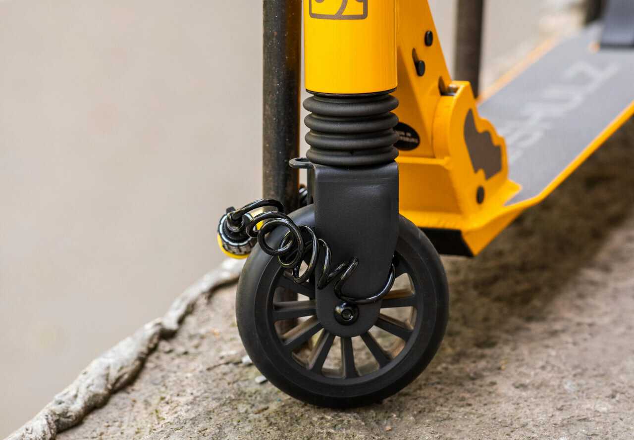 - + простенький , но качественный замок - у меня дочка будет пристегивать самокат в школе