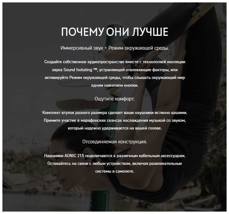 Особенности : | влагозащита, отсоединяемый кабель, сменные амбушюры, съемный микрофон, шумоподавление |
