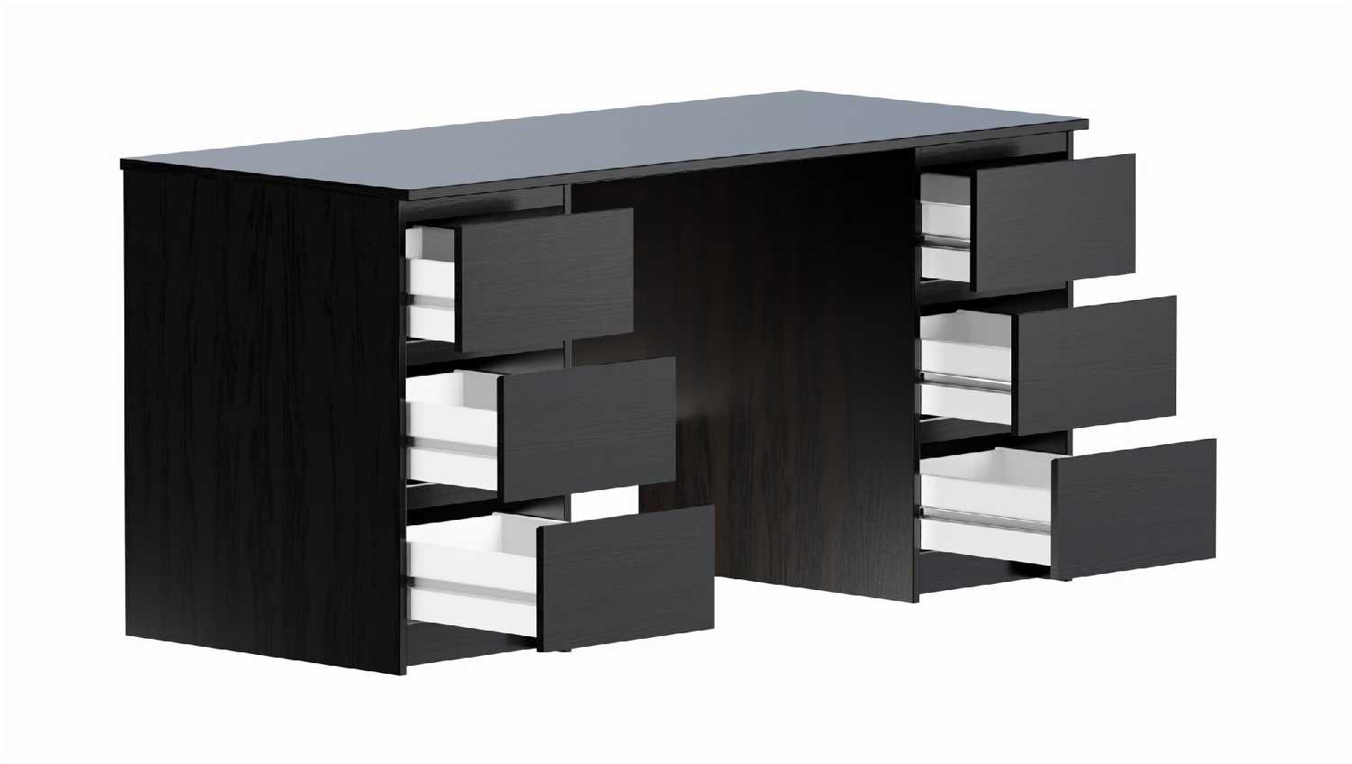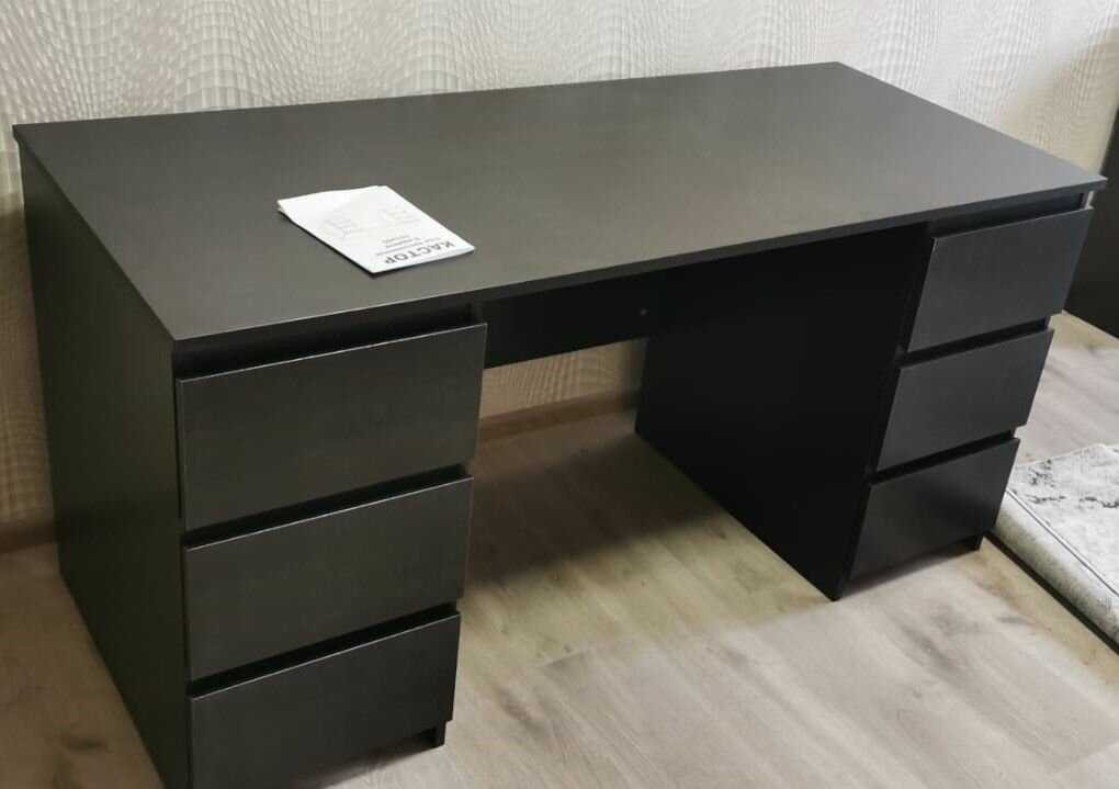 - + Большой размер столешницы, 6 ящиков, комфортная высота.
