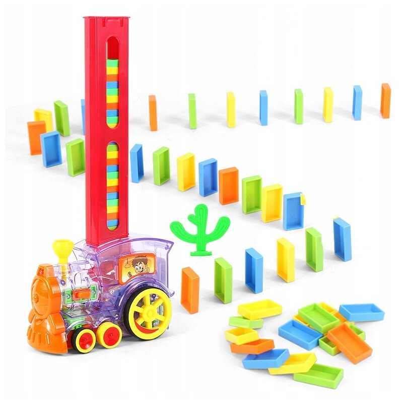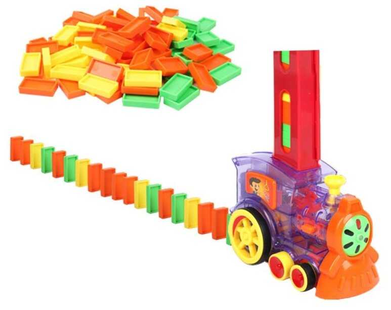 - + Ребёнок в восторге, расставляет доминошки паровоизиком и без него