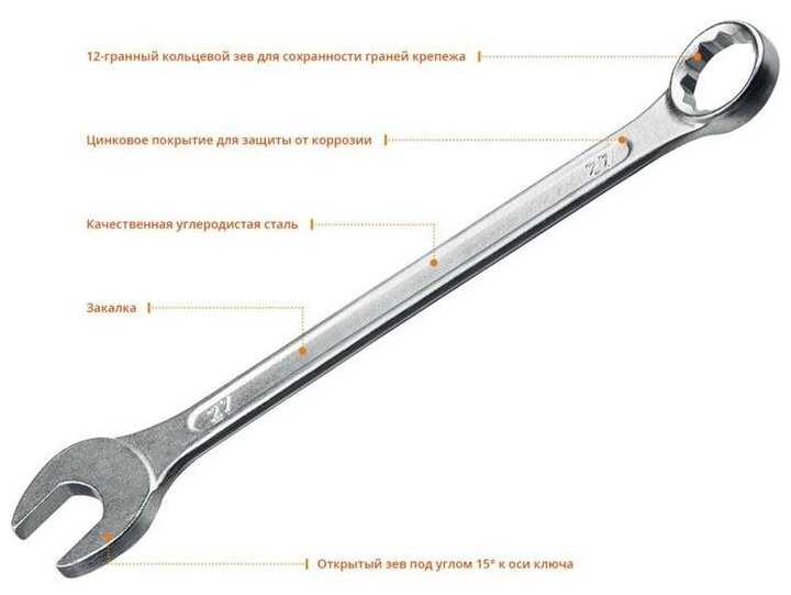 Характеристи SIBIN Ключ комбинированный СИБИН 27089-27, 27 мм