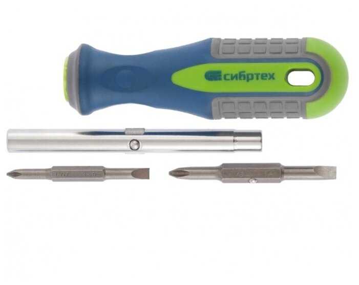- + Две двухсторонние биты, разного диаметра, легко и удобно переставляются.Одним словом отвёртка универсальная.