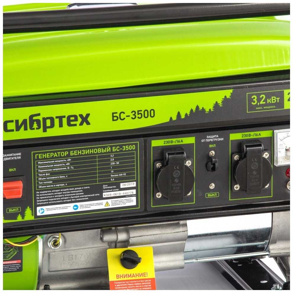Отзывы о Бензиновый генератор Сибртех БС-3500