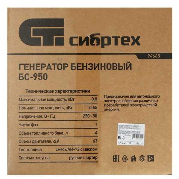 Отзывы о Бензиновый генератор Сибртех БС-950