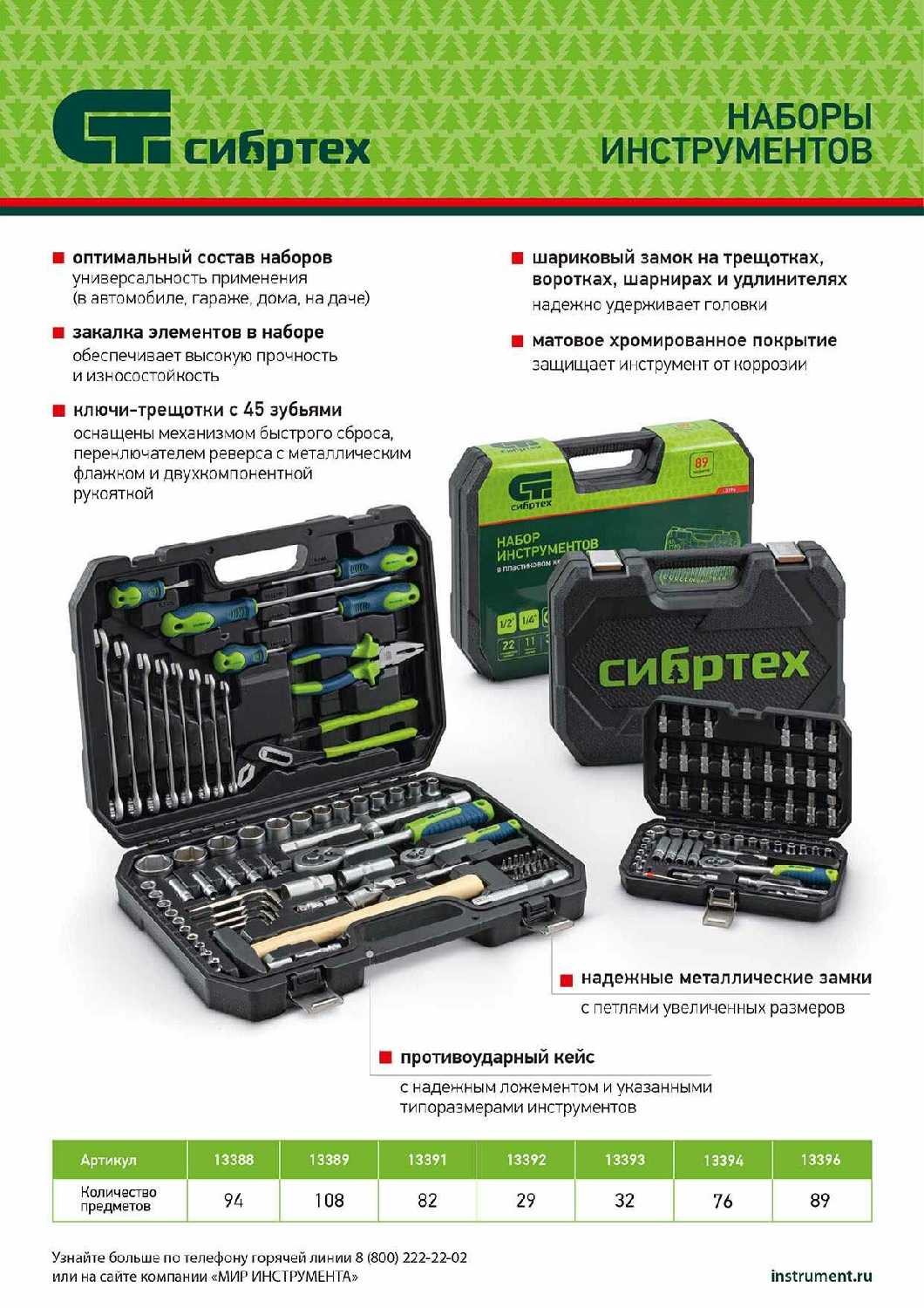 Обзор Сибртех Набор инструментов (13396) - мнение пользователей*: