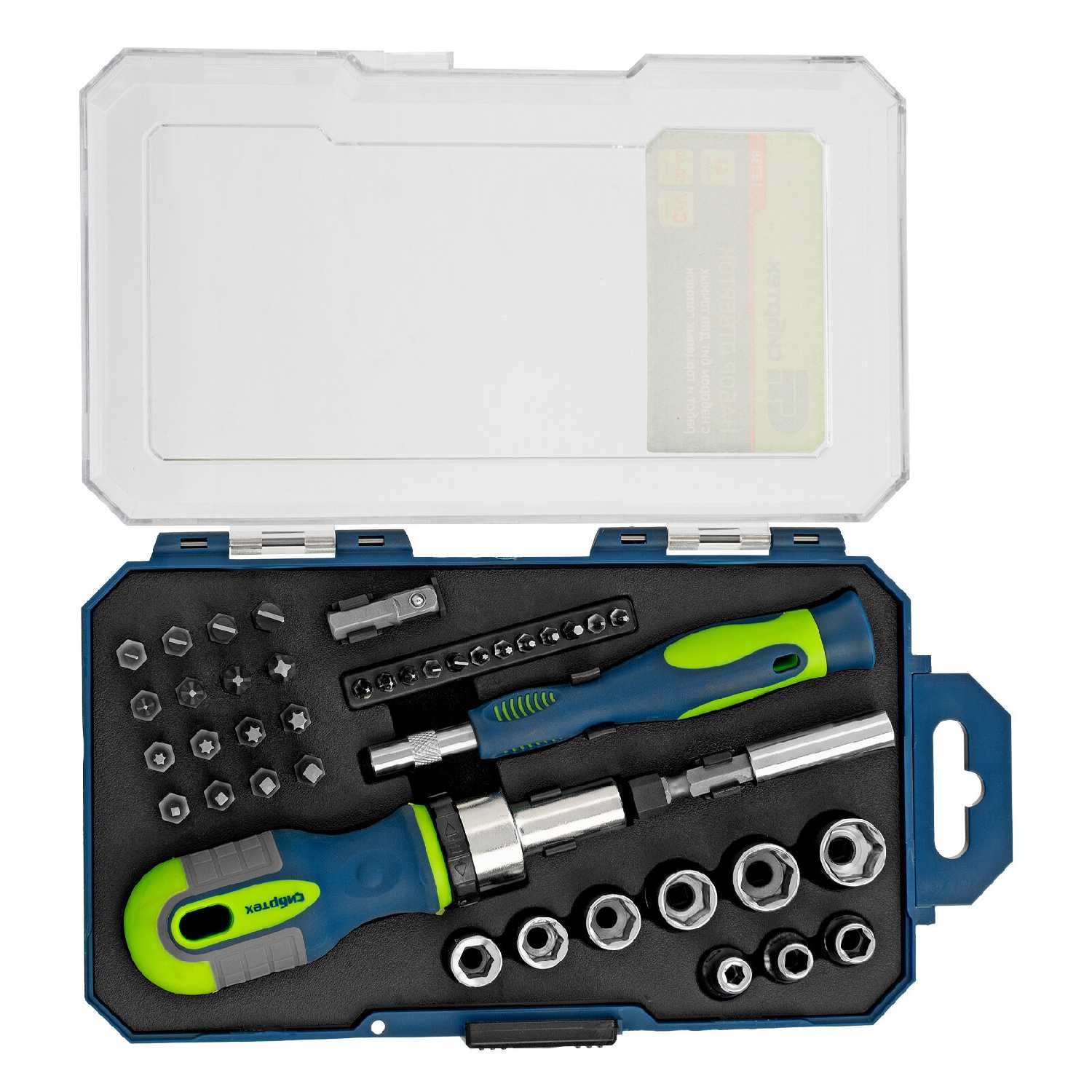 Оснастка в комплекте : | биты, биты с головками, торцевые головки |