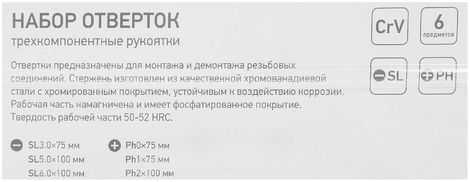 Дополнительная информация : | Набор отверток Сибртех 13374, 6 предметов |