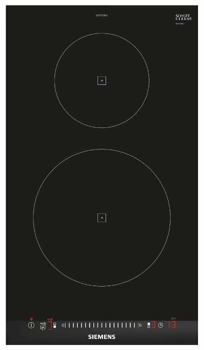 - - Довольно трудно поставить две кастрюли. Нельзя установить максимальный режим при обеих включенных конфорках. Большая конфорка переходит в импульсный режим при включенной маленькой конфорке (на мощности выше средней).
