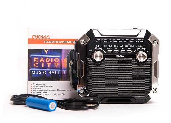 - Многофункциональность (радио + MP3 + фонарь + светомузыка):