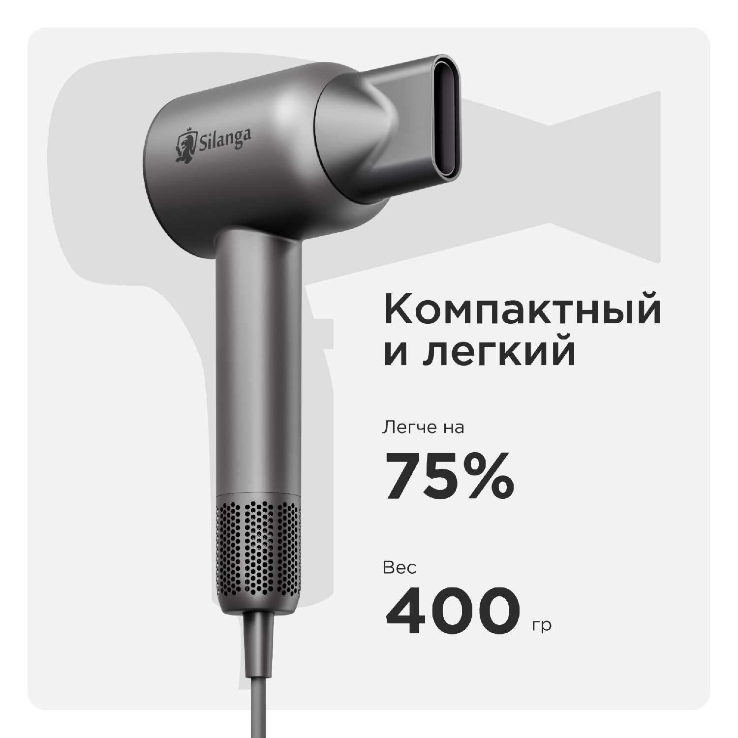 Фен Silanga – это любовь с первого взгляда! Дизайн потрясающий, выглядит дорого и стильно. У меня длинные и густые волосы. Работает мощно, волосы сушатся моментально. Насадки удобные и магнитные, как у дайсона. Упаковка – просто восторг.