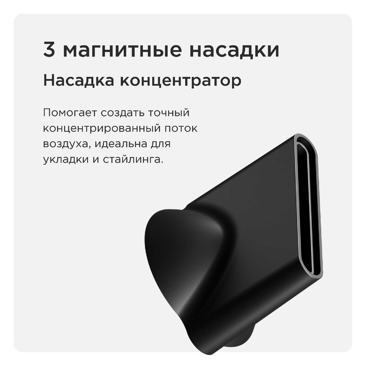 Фен мощный, волосы высыхают в разы быстрее. Дизайн минималистичный, и очень стильный. Насадки практичные и хорошо продуманные. Цвет - топ. Жена в восторге.