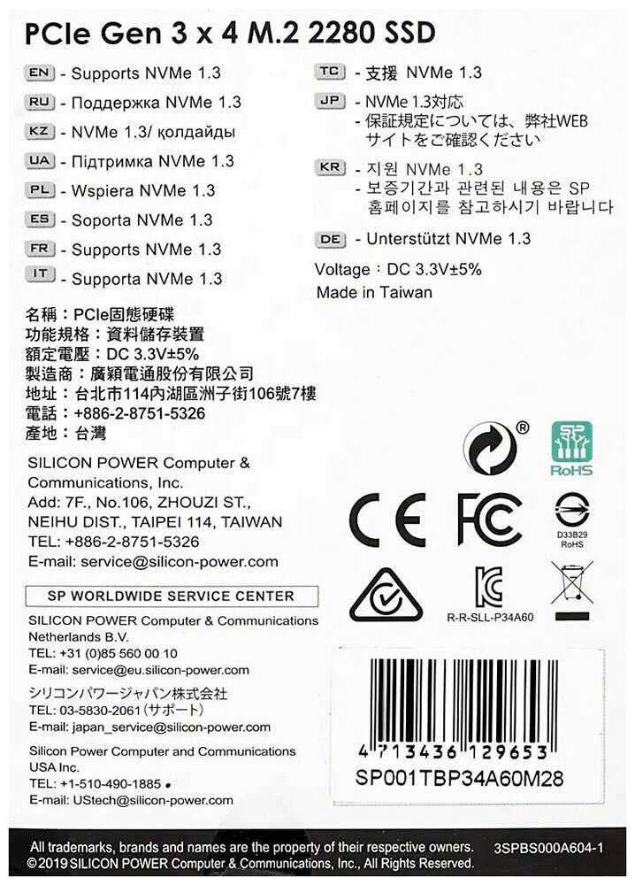 Отзывы о Твердотельный накопитель Silicon Power P34A60 M.2 (SP001TBP34A60M28)