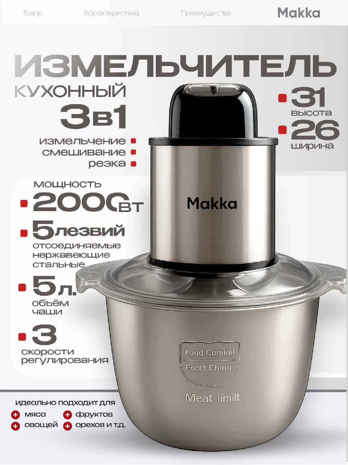 - Насадки: мясорубка