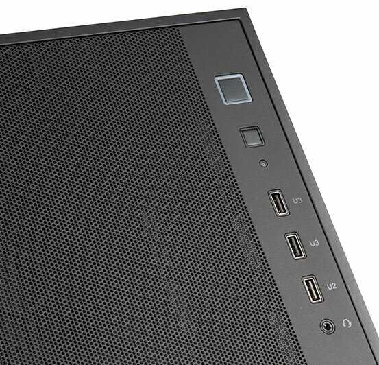 - Разъемы USB 3.0 и кнопка питания вынесены на удобную для доступа зону, актуальную при размещении на столе.