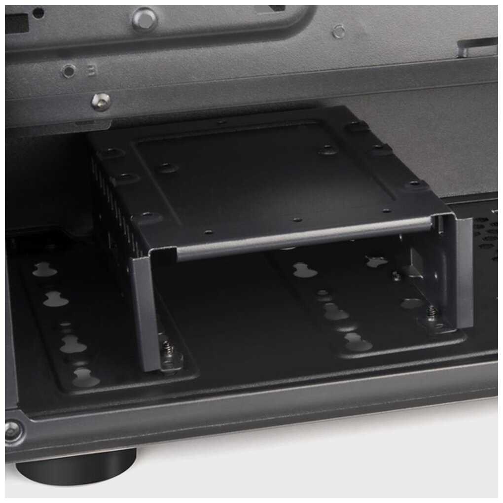 - Поддержка двух 2.5" SSD и одного 3.5" HDD с возможностью демонтажа корзины для улучшения вентиляции.