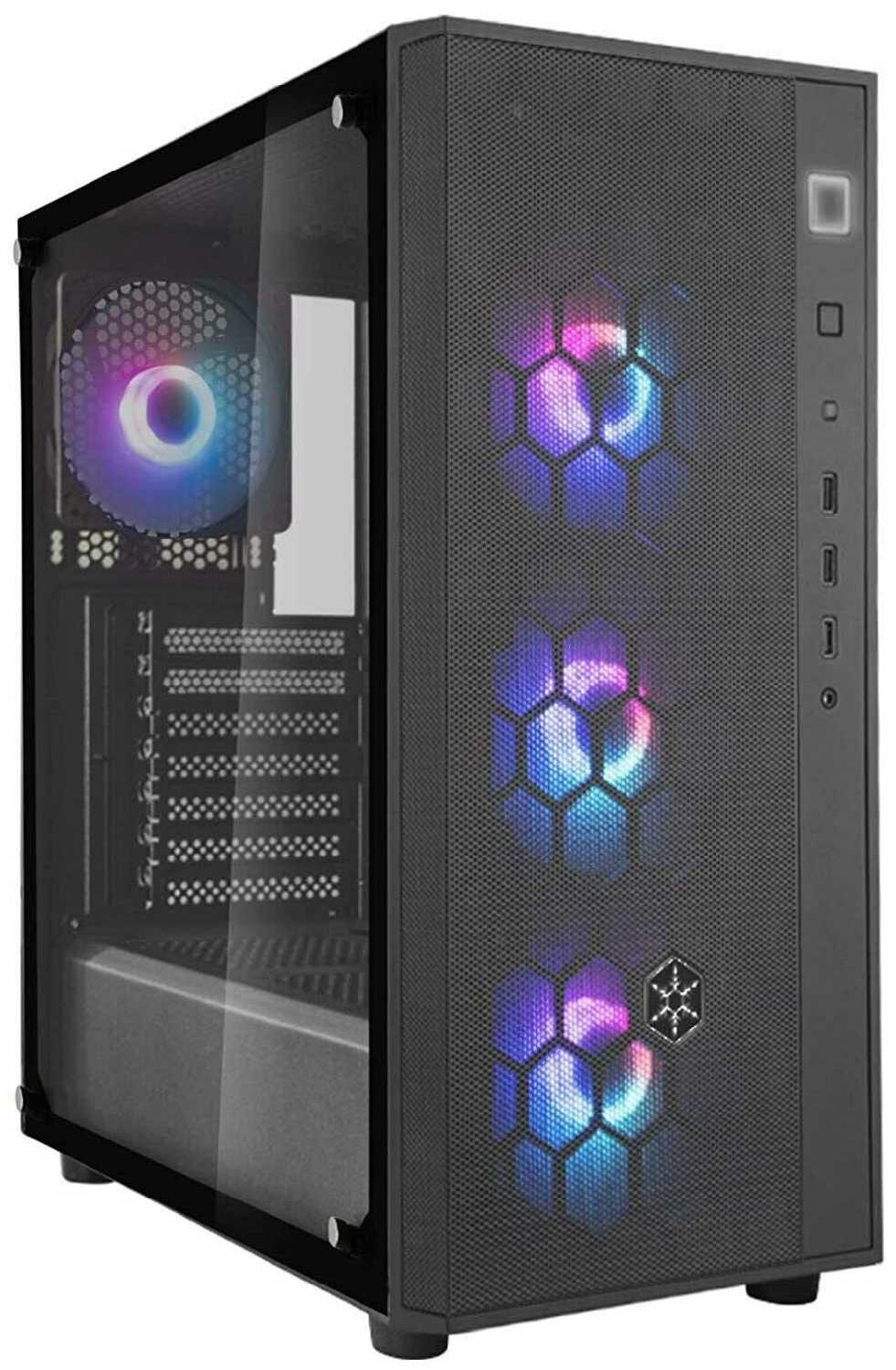 - Закаленное стекло боковой панели (в модификации SST-FAR1W-G) повышает жесткость корпуса.