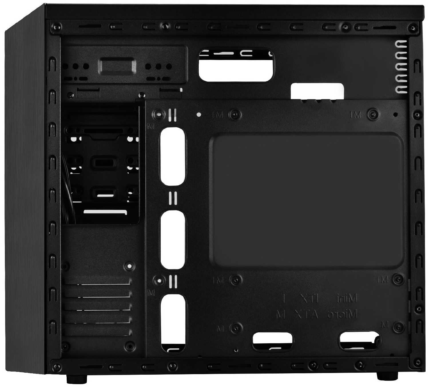 - + Компактный черный/белый куб. Стиль минимализм. Под itx сборку. Совместим с бп формата atx. Теоретически должна быть хорошая продуваемость. Маленький но вместе с тем вместительный. Металл вроде не совсем тонкий, но и толстым назвать нельзя. По качеству косяков не заметил, покраска хорошая.