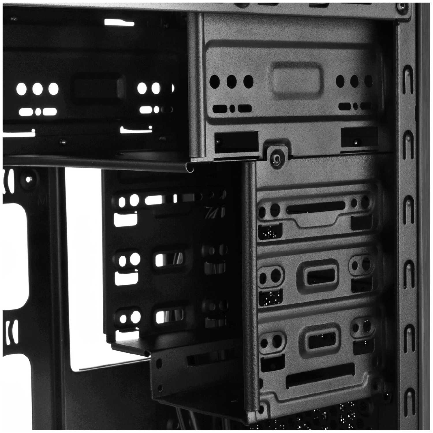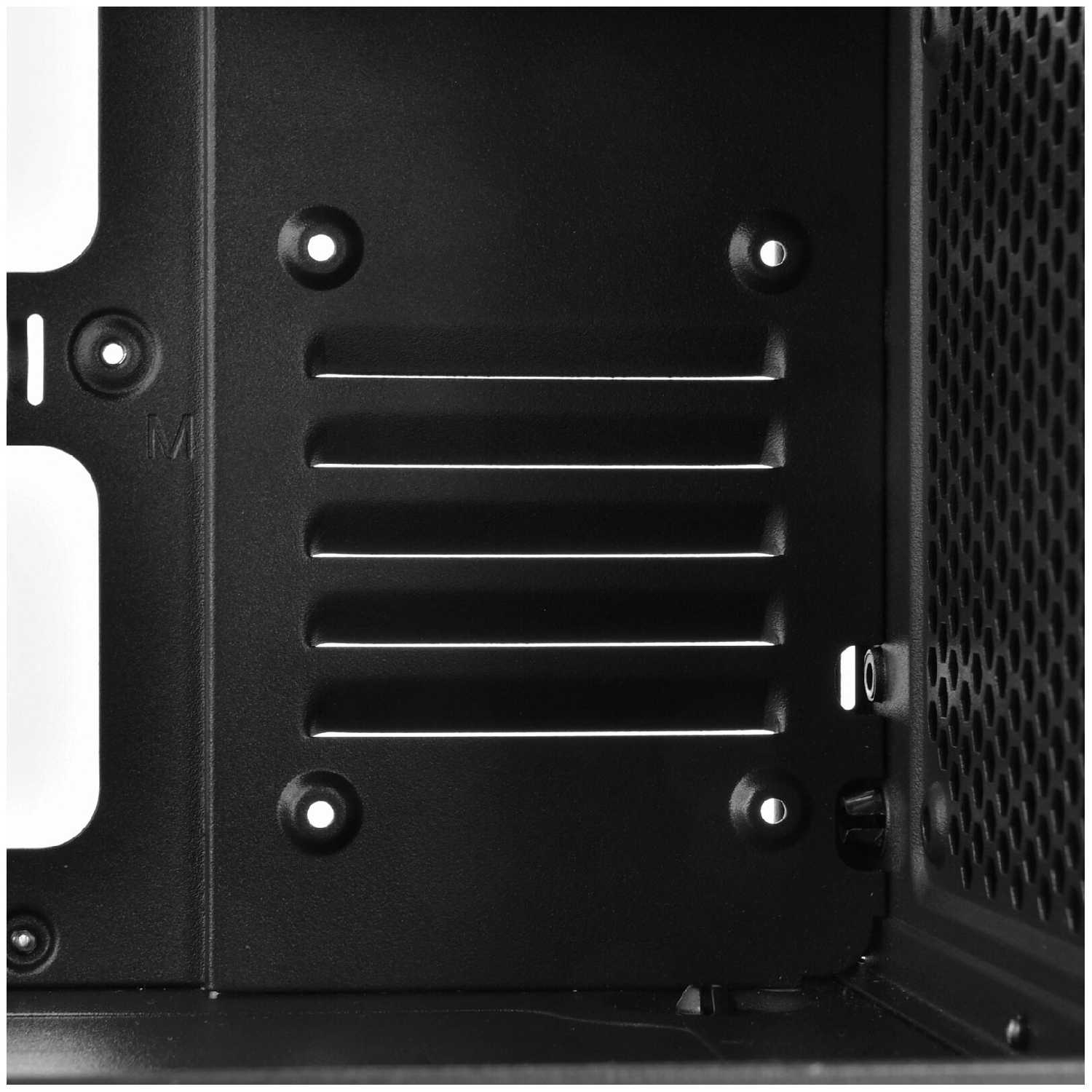 - + Неплохой корпус с элементами кабель-менеджмента. Для тех, кому нужен отсек 5.25. Без всяких прозрачных стенок, излишних решеток. Позволяет собрать компактную систему с вменяемой вентиляцией.