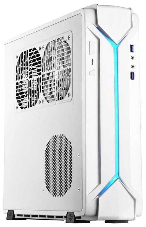 Компактный белый корпус. То, что надо, если системный блок располагается на столе, и при этом должен вписаться в оформление комнаты со светлой мебелью.