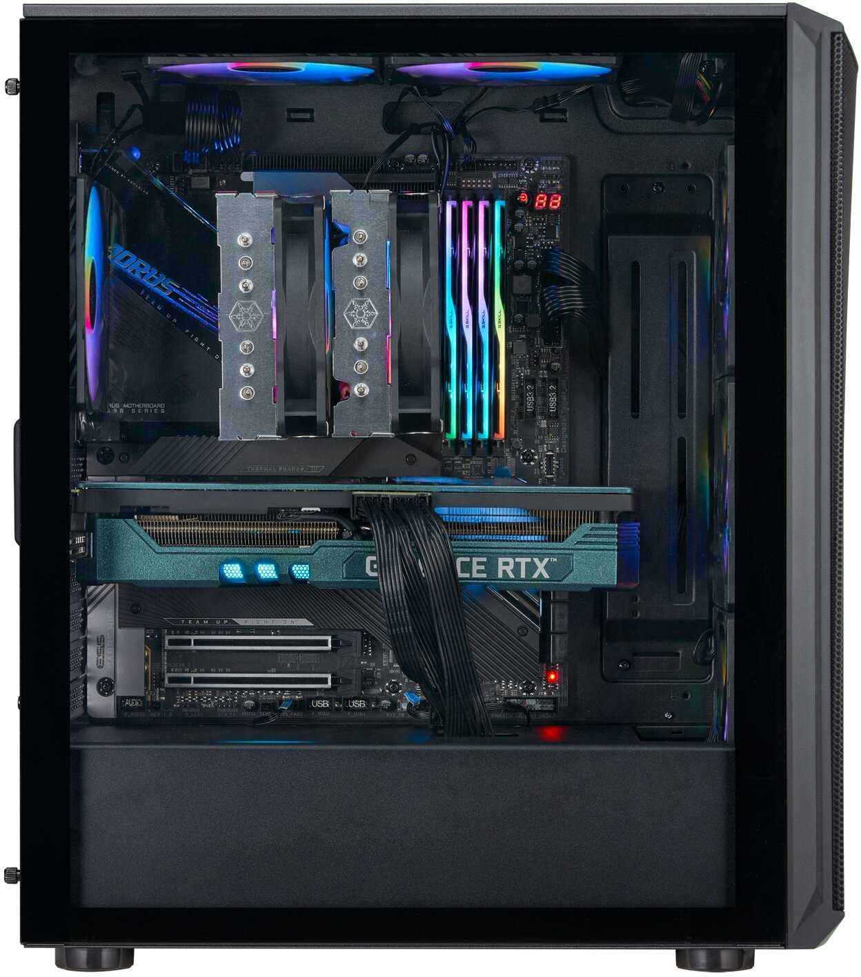 - + Хорошо продувается, красиво выглядит вживую. Я поставил 4070 карту, райзен 7 проц, и озу 64 гб и ssd+hdd диски. Красота же!