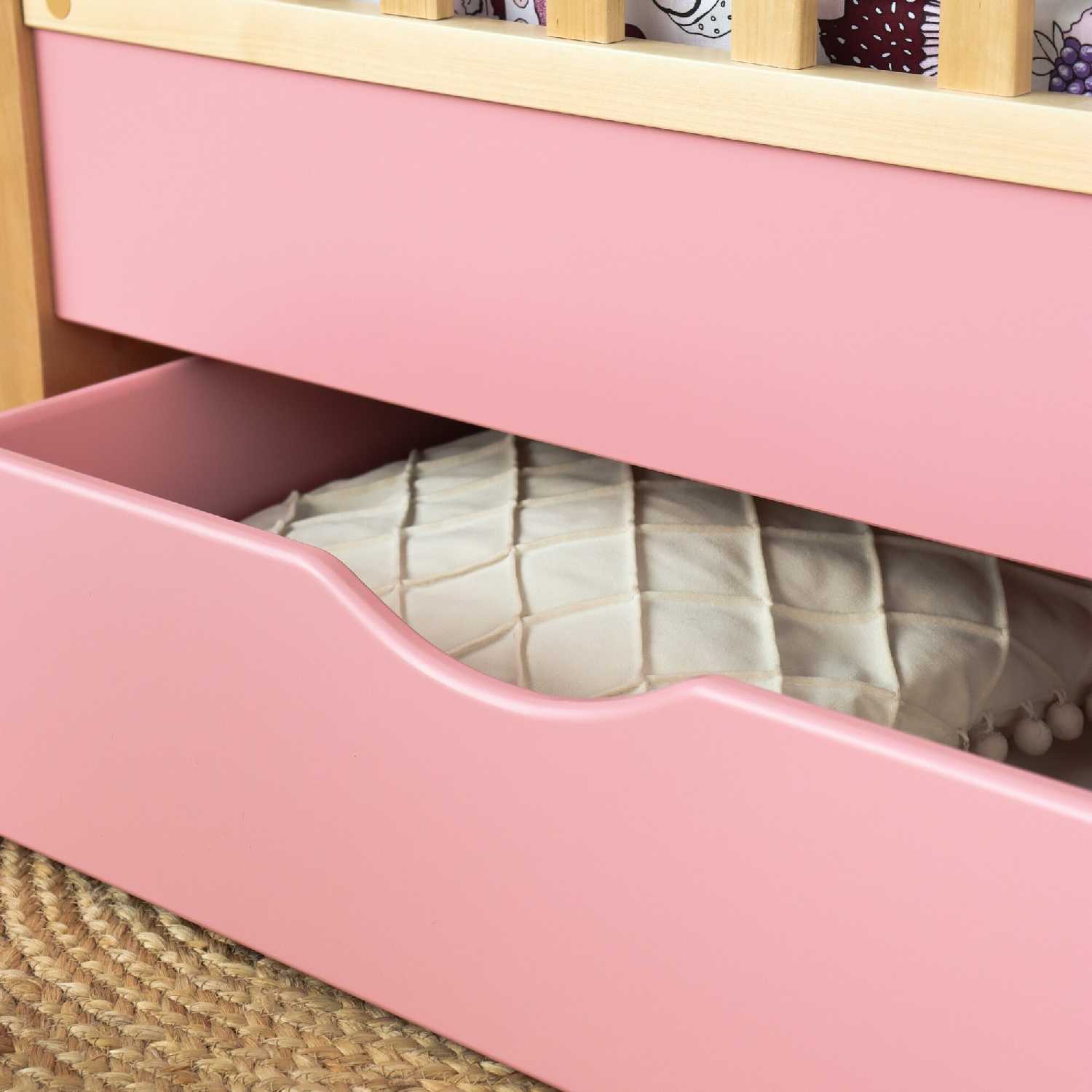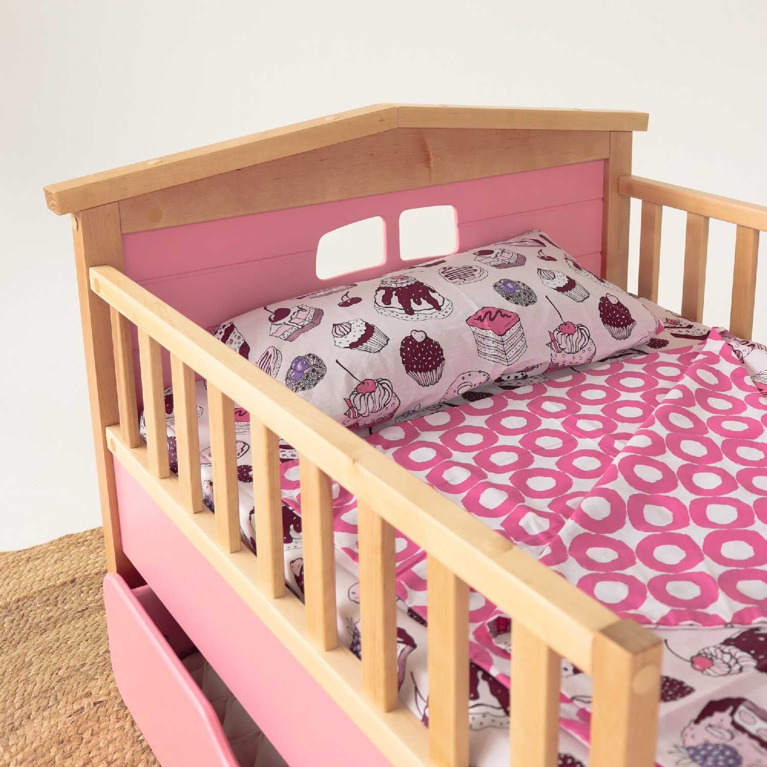 - + Понравилось, как выглядит кроватка. Удобство в том что она раздвижная,хватит на несколько лет, пока растёт ребёнок. Широкая, 80 см. Заказали так же растущий матрас и бортик.