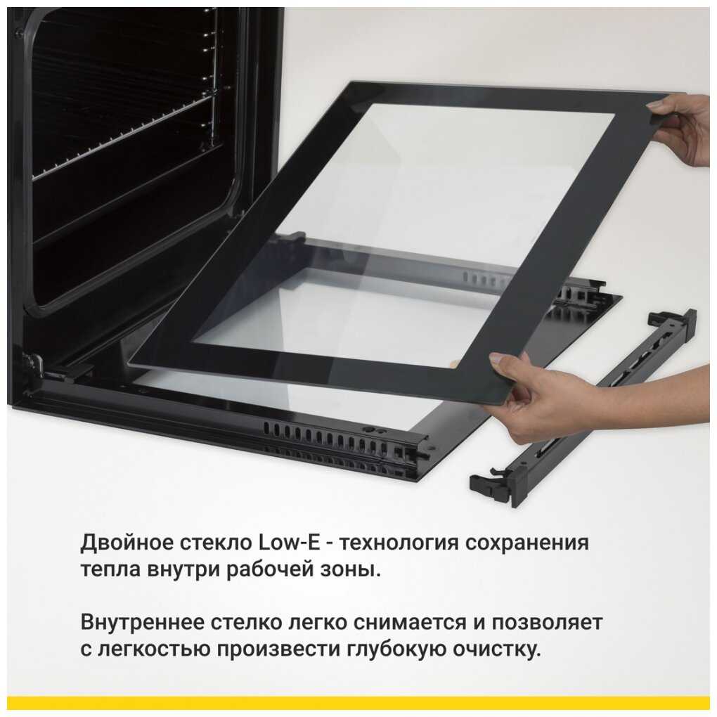 - Дверное стекло и ручка остаются холодными даже при 240°C, предотвращая ожоги.