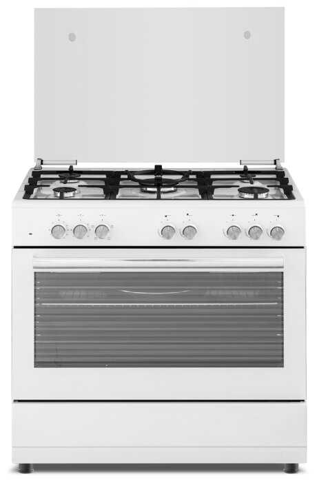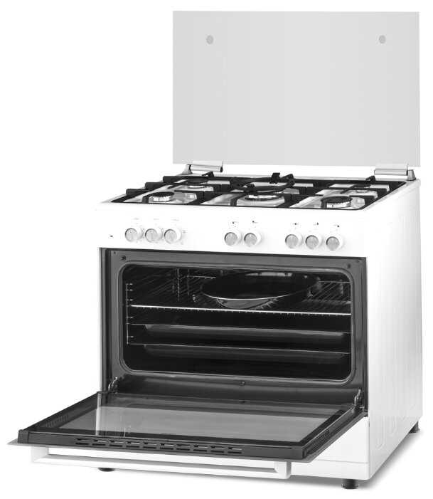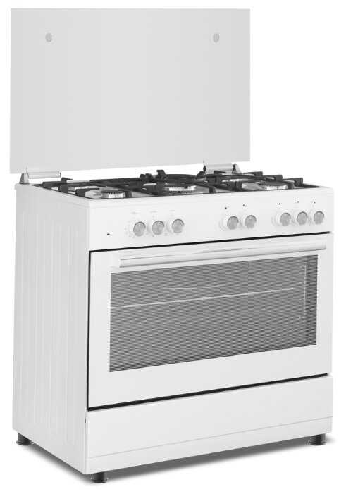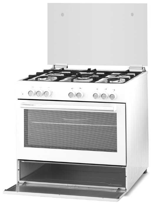 Особенности конструкции : | подсветка духовки, телескопические направляющие, чугунные решетки, эмаль легкой чистки, ящик для посуды |