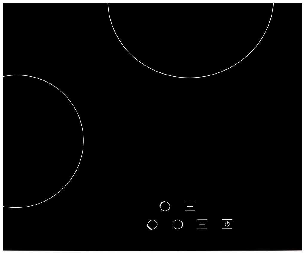 - Расположение зон нагрева (две средние, одна расширенная) подходит для одновременного использования посуды разного диаметра.