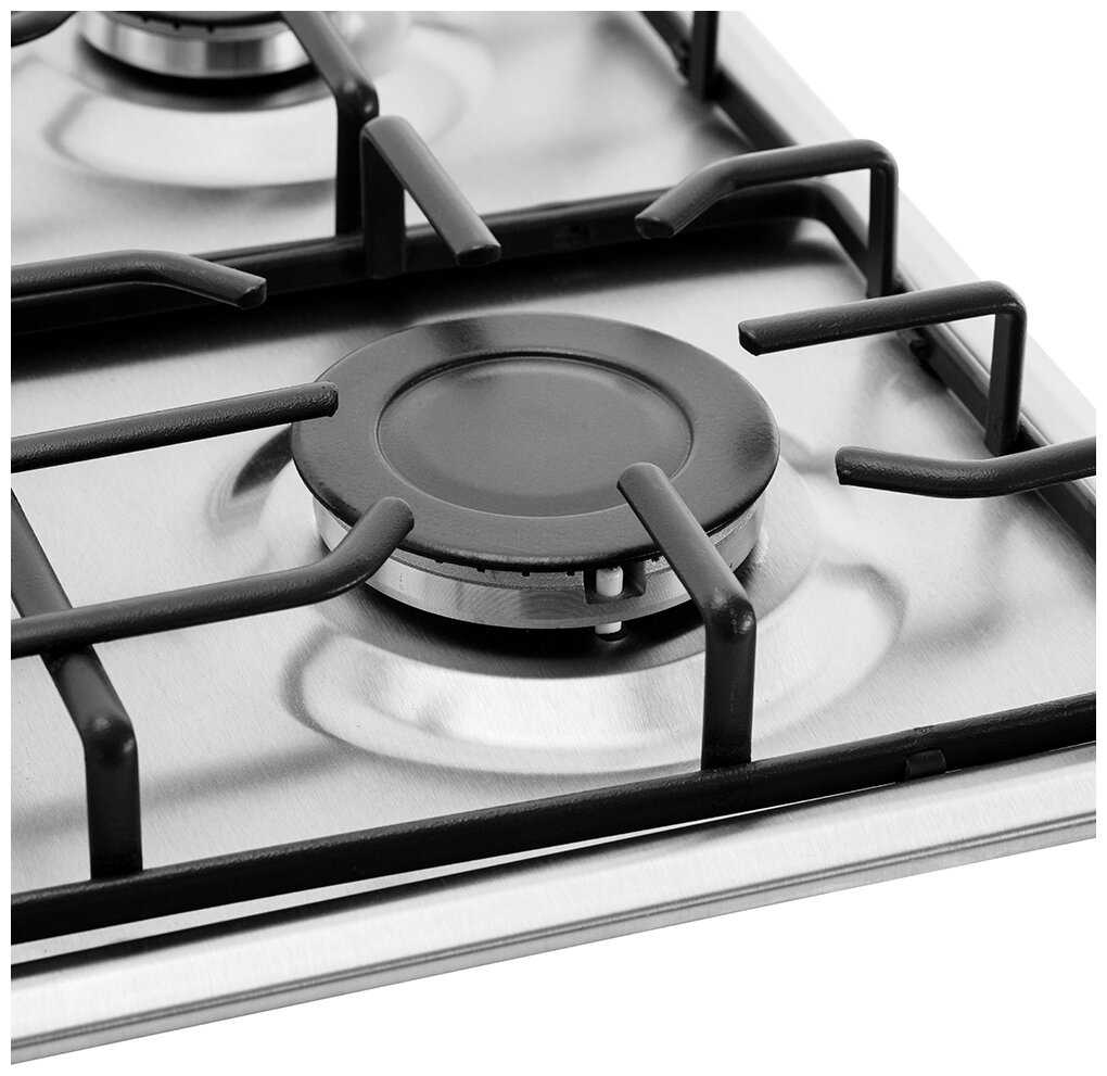 Помимо газ-контроля, безопасность обеспечивают изолированные переключатели (не нагреваются) и термостойкие решетки. Даже при длительной готовке боковые панели остаются холодными, что исключает ожоги. Это делает модель подходящей для семей с детьми, где важна профилактика случайных касаний. -
