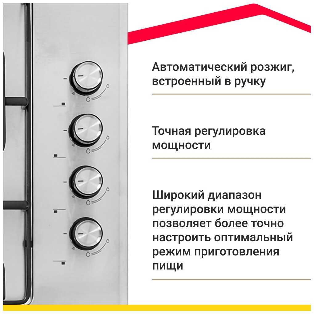 Удобство управления и функциональность: Расположение переключателей слева сбоку признано пользователями очень удачным и эргономичным решением – они всегда находятся "под рукой". Механические переключатели работают безотказно, легко проворачиваются даже мокрыми пальцами и не нагреваются в процессе работы. Электроподжиг функционирует мягко и стабильно на всех четырех конфорках, что отмечается как значительное удобство. Пользователи ценят наличие системы газ-контроля, добавляющей безопасности, и возможность подключения панели к газовому баллону, что особенно актуально для дачного использования. Регулировка пламени осуществляется легко и точно.