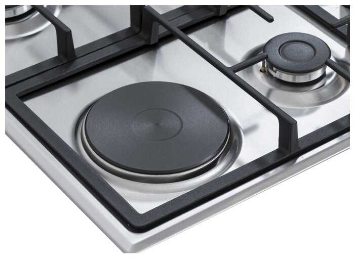 Металл панели тонкий, при установке кастрюли прогибается и при снятии выправляется. Блестящая поверхность вокруг электроконфорки потемнела недели через 3 после использования, стала какого-то фиолетового цвета. Электроконфорка имеет всего 3 регулировки!!!!! Например кашу без присмотра не оставишь, надо отключать и включать периодически. Нет самой маленькой мощности как на электро, так и на газовых конфорках!!! Приходится переставлять с одной на другую , чтоб добиться малого кипения! Очень не удобно. Электроподжиг работает хорошо, удобно. Индикатор включения электроконфорки при достаточном свете почти виден. Не понимаешь включена или нет, приходится создавать тень рукой.