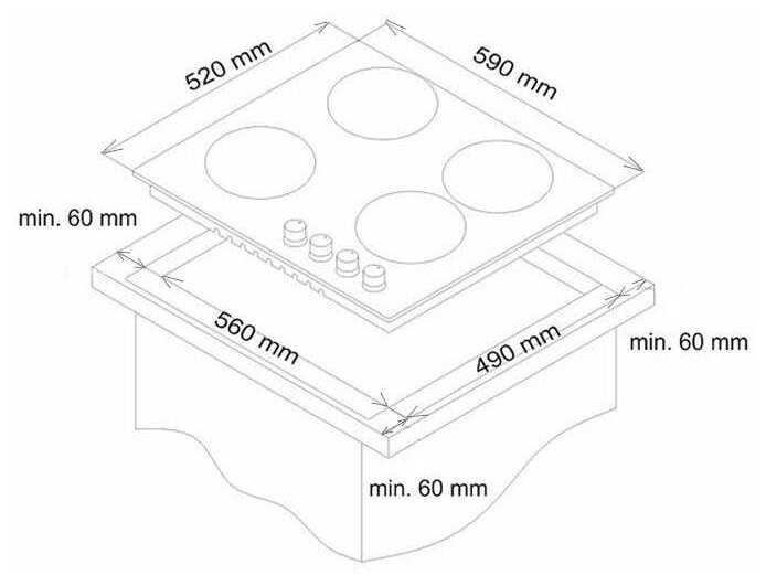 - + Удобное расположение конфорок, газ-контроль и автоподжиг. Конфорка WoK.