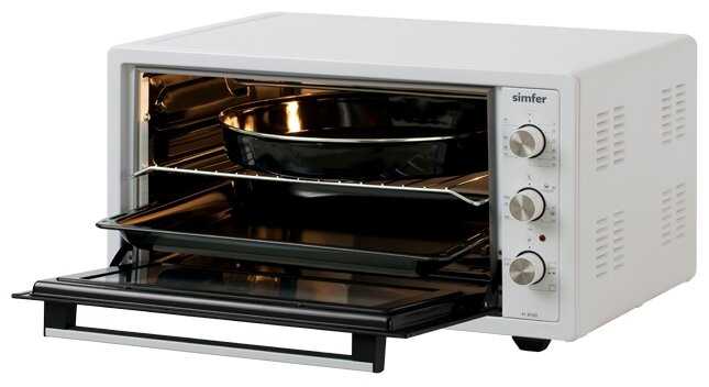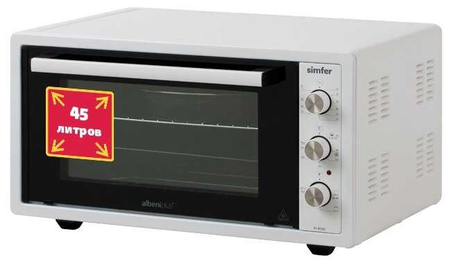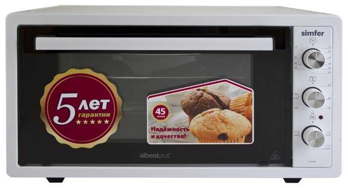 Долго выбирала мини-печь для дачи, хотелось и дешево и сердито. Пока определялась с брендом, цены подскочили. Выбор остановила на Simfer 4590. Объем 45 литров. Купила за 7599 р. Первое впечатление, что понравилась печь. Красивый дизайн, с подсветкой, очень вместительная. Размер духовки по ширине почти как в обычной эл. печи, по глубине немного поменьше. Сегодня опробовала первый раз, жарила крылышки куриные. Не разочаровалась совсем! В процессе работы печи нагреваются боковые стенки, верх и дверца. Но это совсем не критично, надо только быть осторожнее. Задняя стенка нагревается очень сильно, прикоснулась- зашипела. Сборка вполне приличная, даже не ожидала, судя по отзывам. Дверца прилегает очень плотно, с двойным стеклом, это очень хорошо. Противни по качеству просто супер, эмалированные. Внутри печь покрыта эмалью, очень хорошо протирается влажной тряпочкой. Ну, в общем, пока довольна. Выпечку пока не пробовала. Кто выбирает, присмотритесь к этой печи. Самые необходимые функции у этой модели есть, довольно бюджетный вариант при нынешних ценах. И в ДНС на момент покупки оказалось дешевле других продавцов.