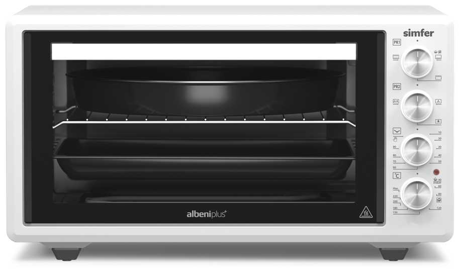 Комплектация : | решётка, противень, поддон для сбора крошек, круглый противень |