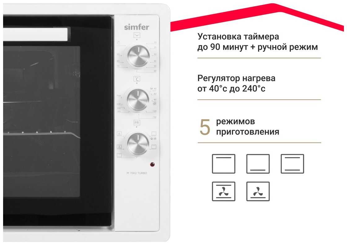 Режимы работы : | верхний нагрев, верхний+нижний нагрев, конвекция, нижний нагрев |