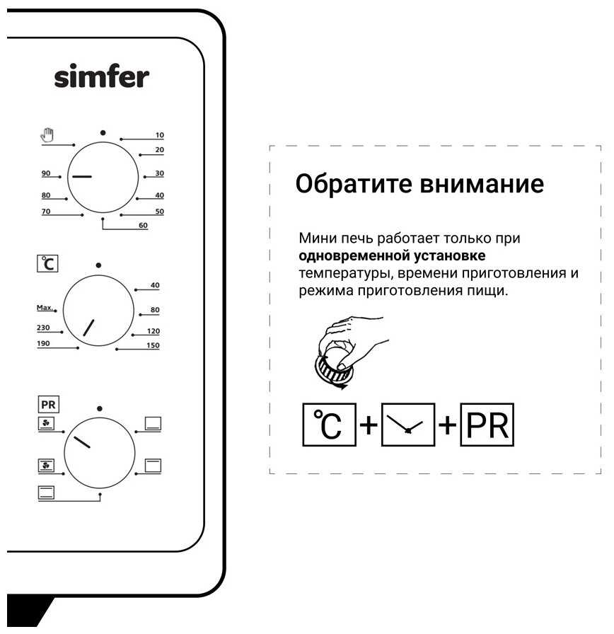Режимы : | верхний нагрев, нижний нагрев, конвекция, верхний+нижний нагрев |