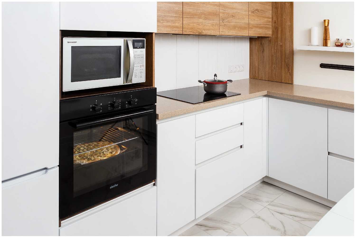 - Режимы конвекции, гриля и верхнего/нижнего нагрева обеспечивают равномерную пропечку без сырых участков.