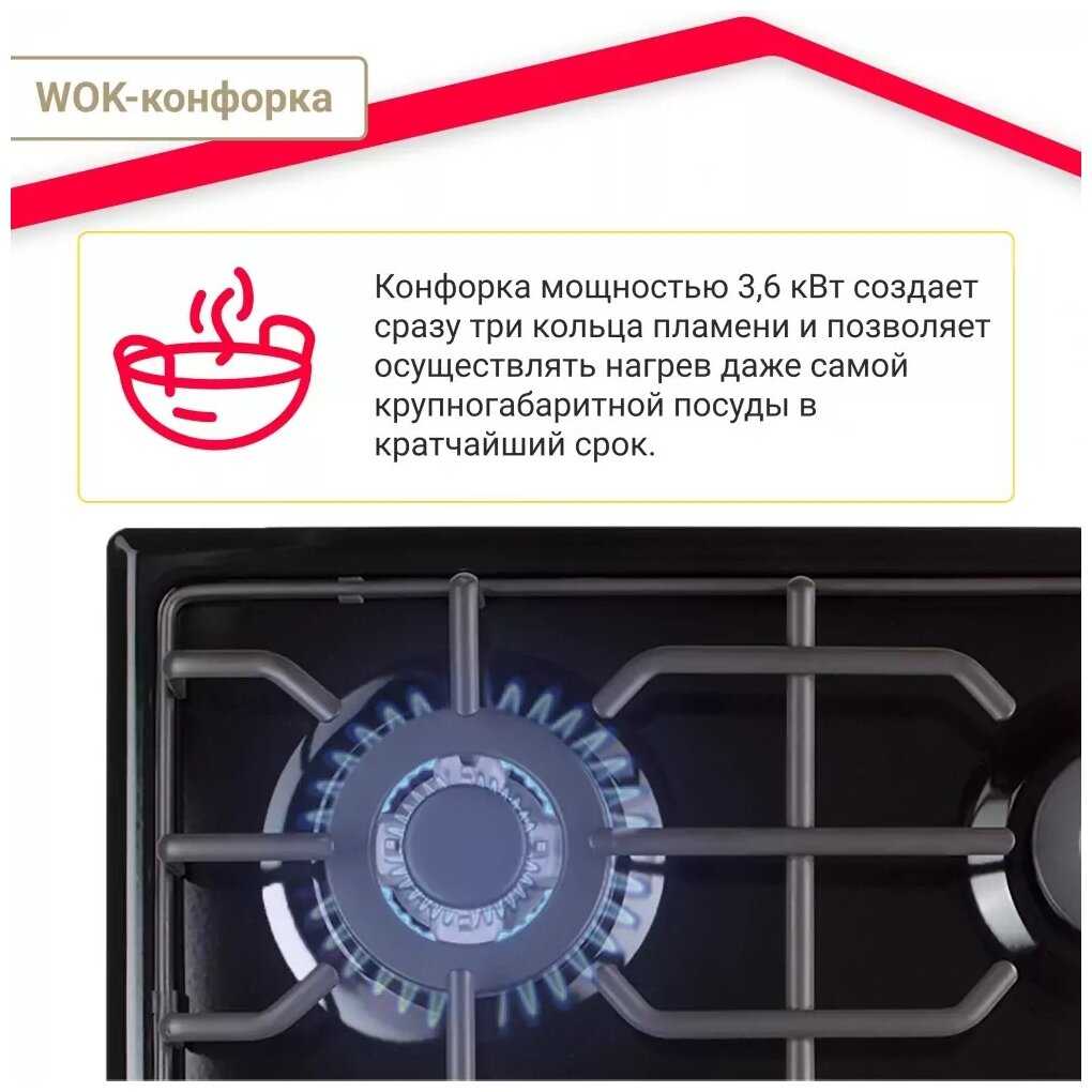 - + Красивый дизайн.Функция отключения подачи газа,если утекла жидкость с кастрюли.Конфорки для разных диаметров кастрюль.Духовка печёт идеально.Если внимательно почитать таблицу приготовления блюд,то всё получиться.Самый лучший помощник для женщины на кухне.