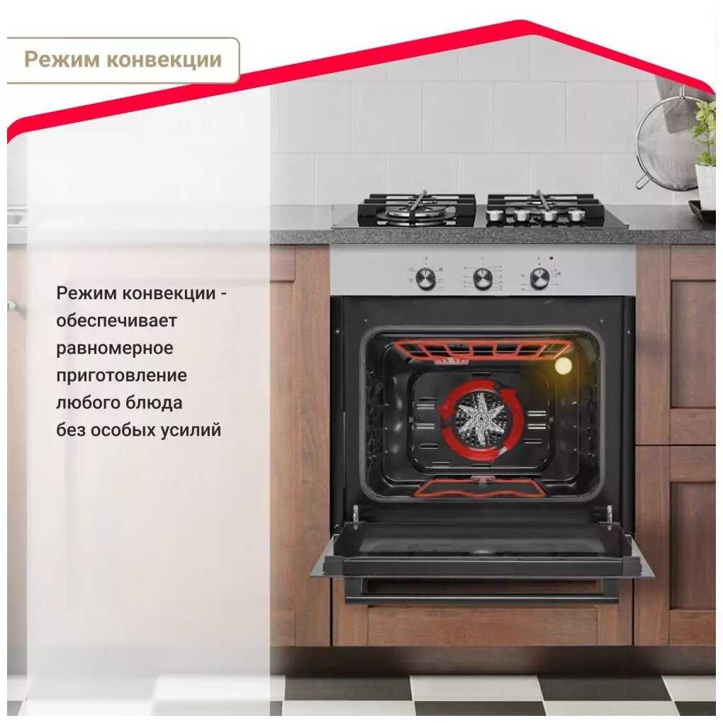 - + Удобная варочная панель с конфорками разного размера, 5 режимов нагрева духовки, гидролизная очистка, конвекция.