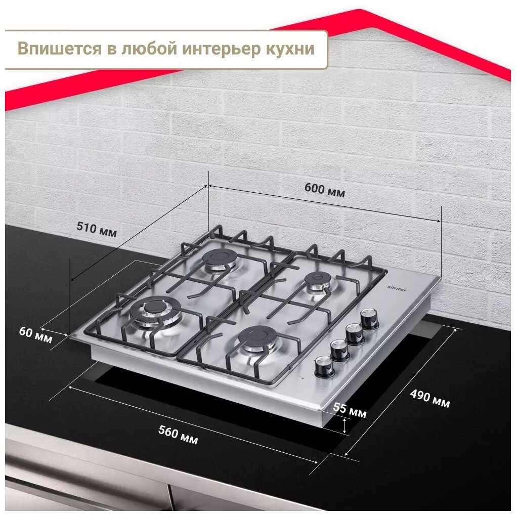 Размеры варочной панели (ШхГхВ) : | 60х52х5.50 см |