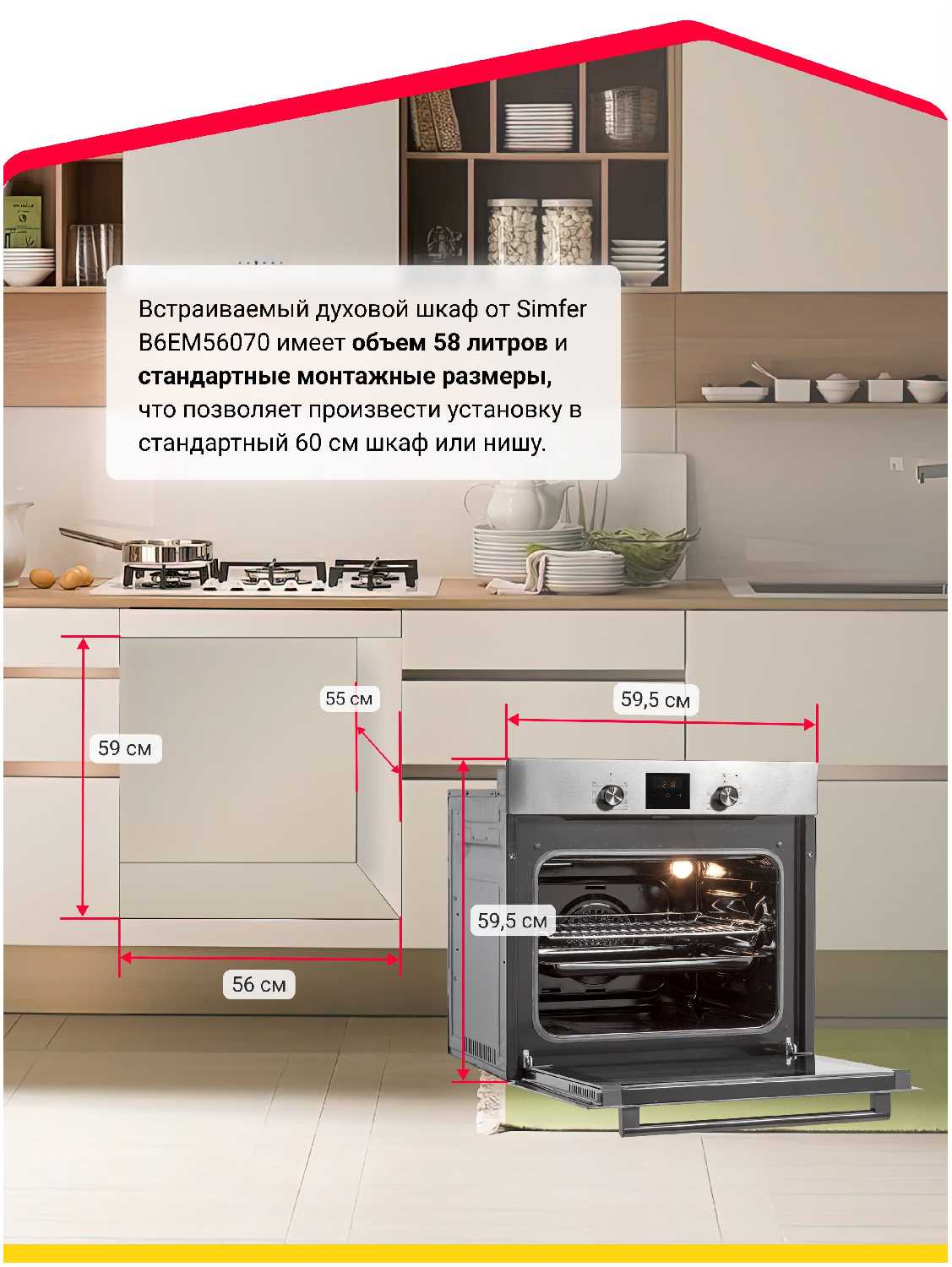 Размеры духового шкафа (ШхГхВ) : | 59.50х56.50х60 см |