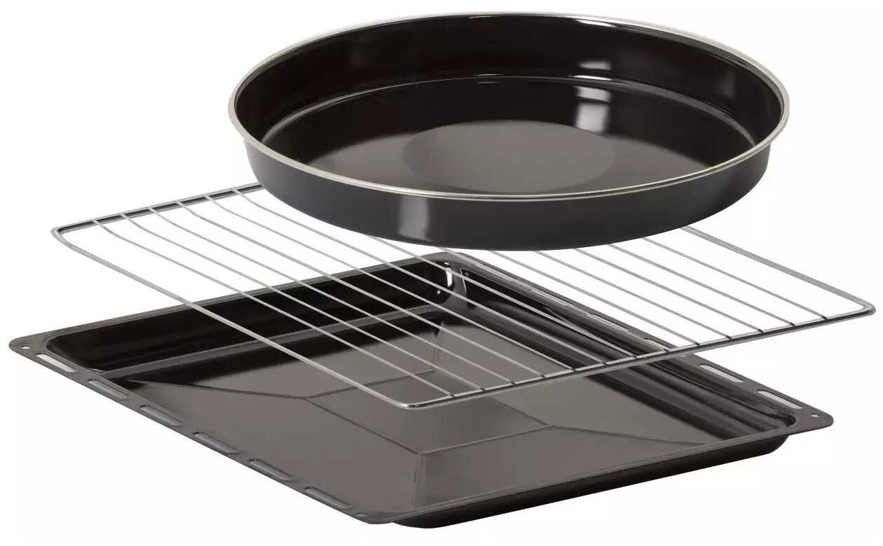 Комплектация : | стандартный противень с антипригарным покрытием, хромированная решётка, круглый противень, инструкция по эксплуатации, гарантийный талон |