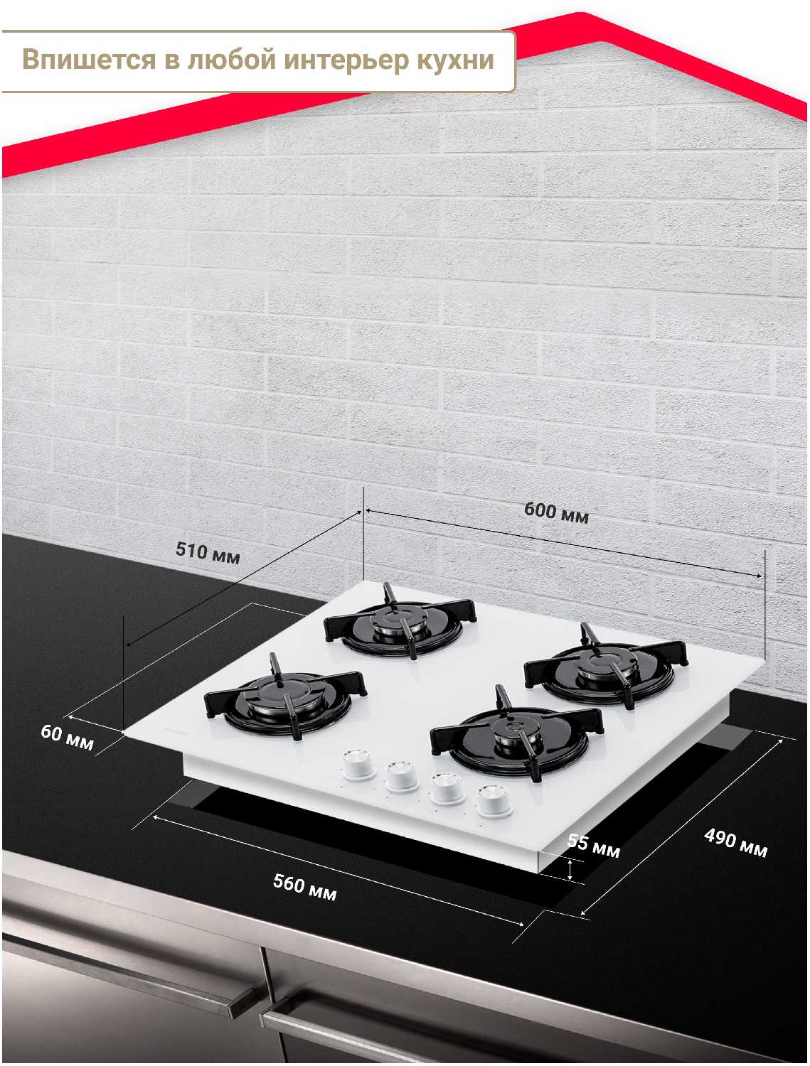 Размеры варочной панели (ШхГхВ) : | 60х51х5.50 см |