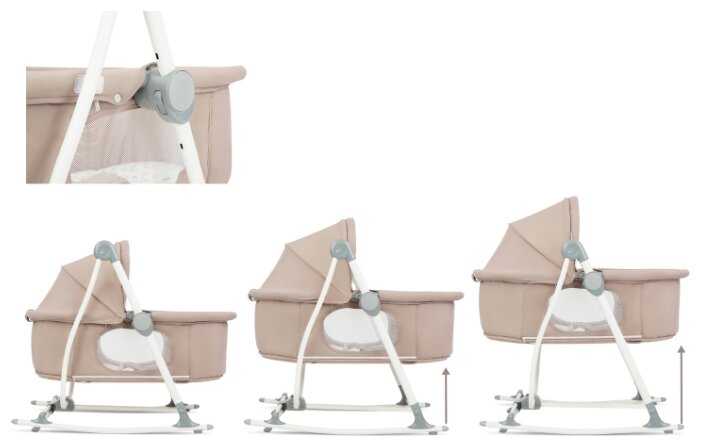 - + Переносная кроватка - качалка превращается в шезлонг, качели или в стульчик. Москитная сетка для комфортного сна на природе, 2 подвесные мягкие игрушки. Удобно перевозить в машине, занимает мало места.