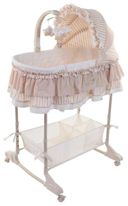 Понравилась с первого взгляда. Колыбель не просто красивая, она отличного содержания. Привлекательная расцветка. Тканевый чехол легко снимается для стирки. Корзинка внизу очень удобна для игрушек, влажных салфеток, чистых подгузников. Место для ребёнка просторное. Объёмный капор.
